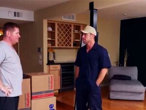 Audrey Bitoni sucks and fucks the mover in the bathroom & living room