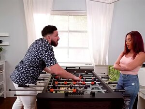 Busties Danni and Avy playing table. Busties Danni and Avy playing table soccer -