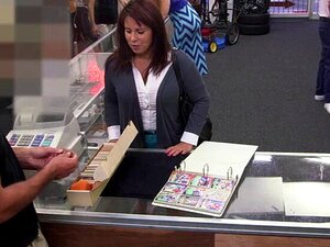 Slutty and MILF woman walks in to Shawns store to sell her husbands card collection in order to bail him. Shawn gives a different offer and brings her in to his office. He makes her suck his big meaty cock and fucks her on the table in some positions.