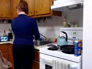 Short haired stepmother i'd like to fuck loves the way her gracious step- stepson is fingering her twat in the kitchen
